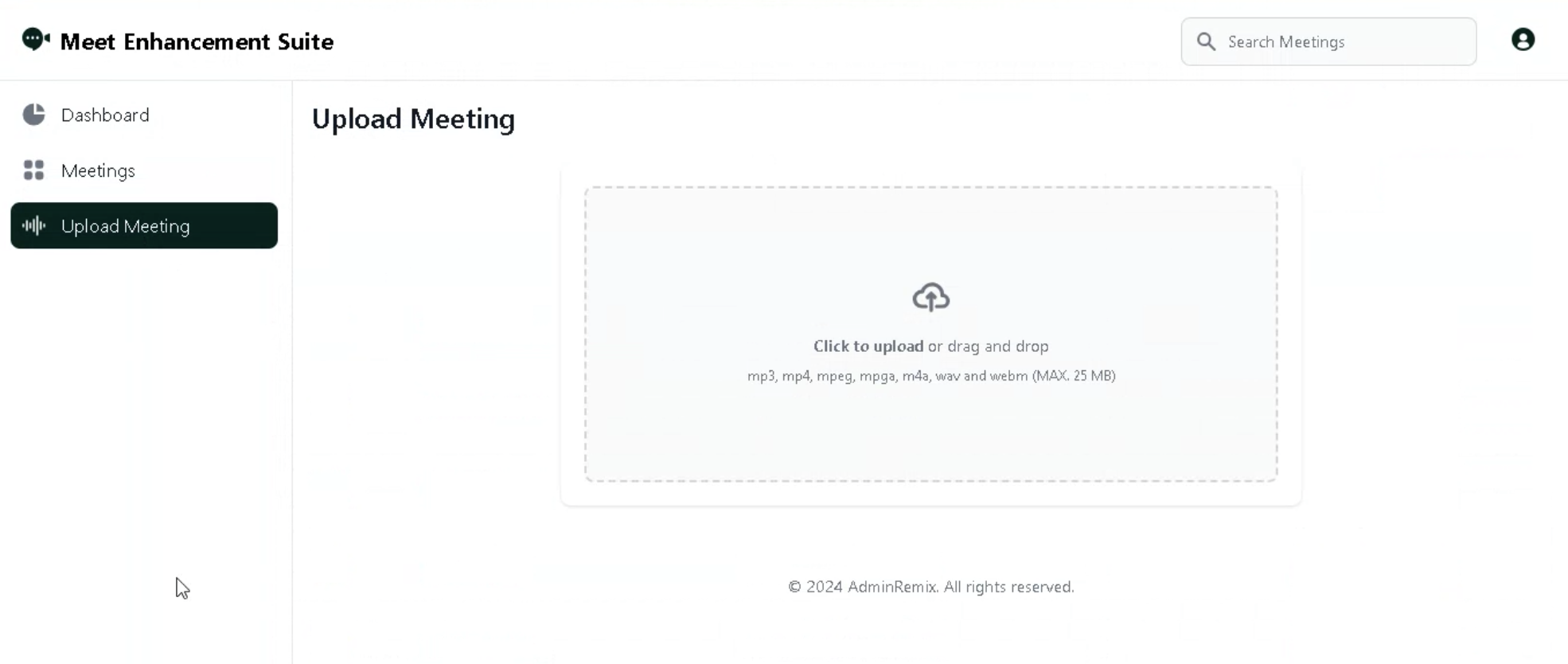 Use our latest feature to upload past meetings for transcripts. *Current upload max is 25MB